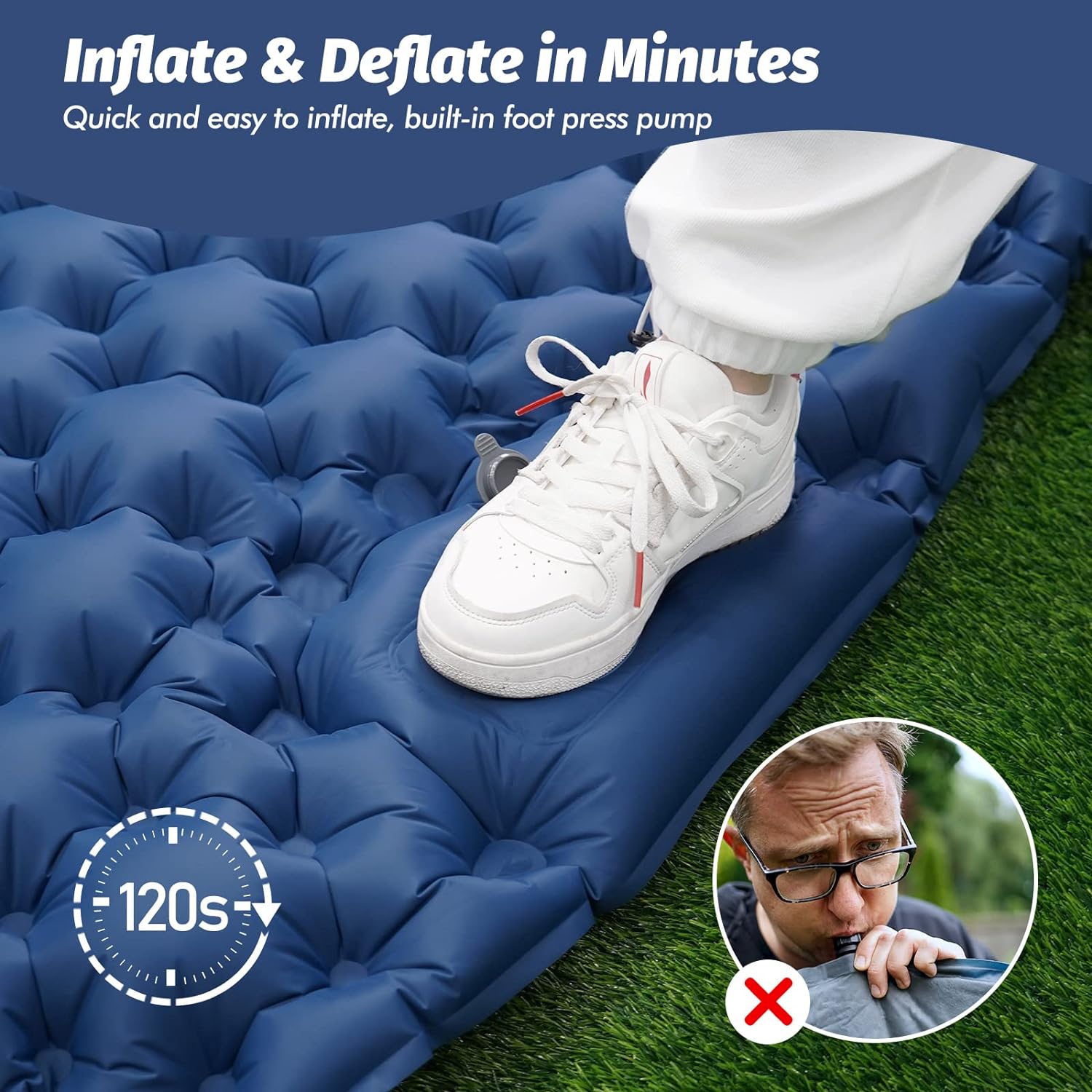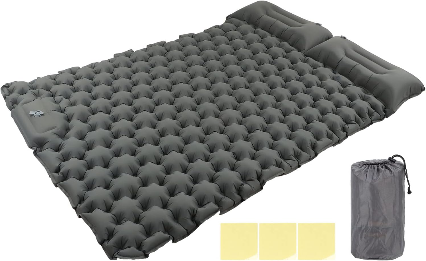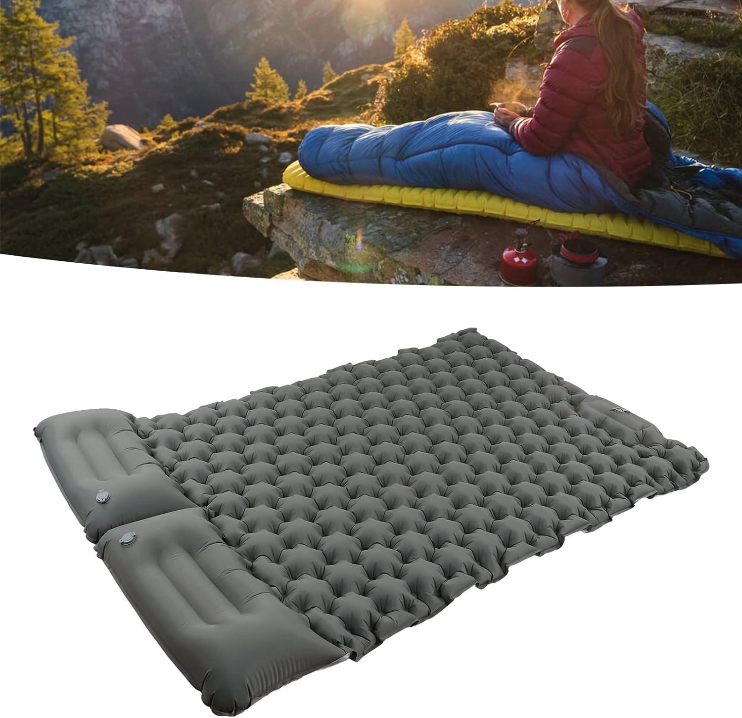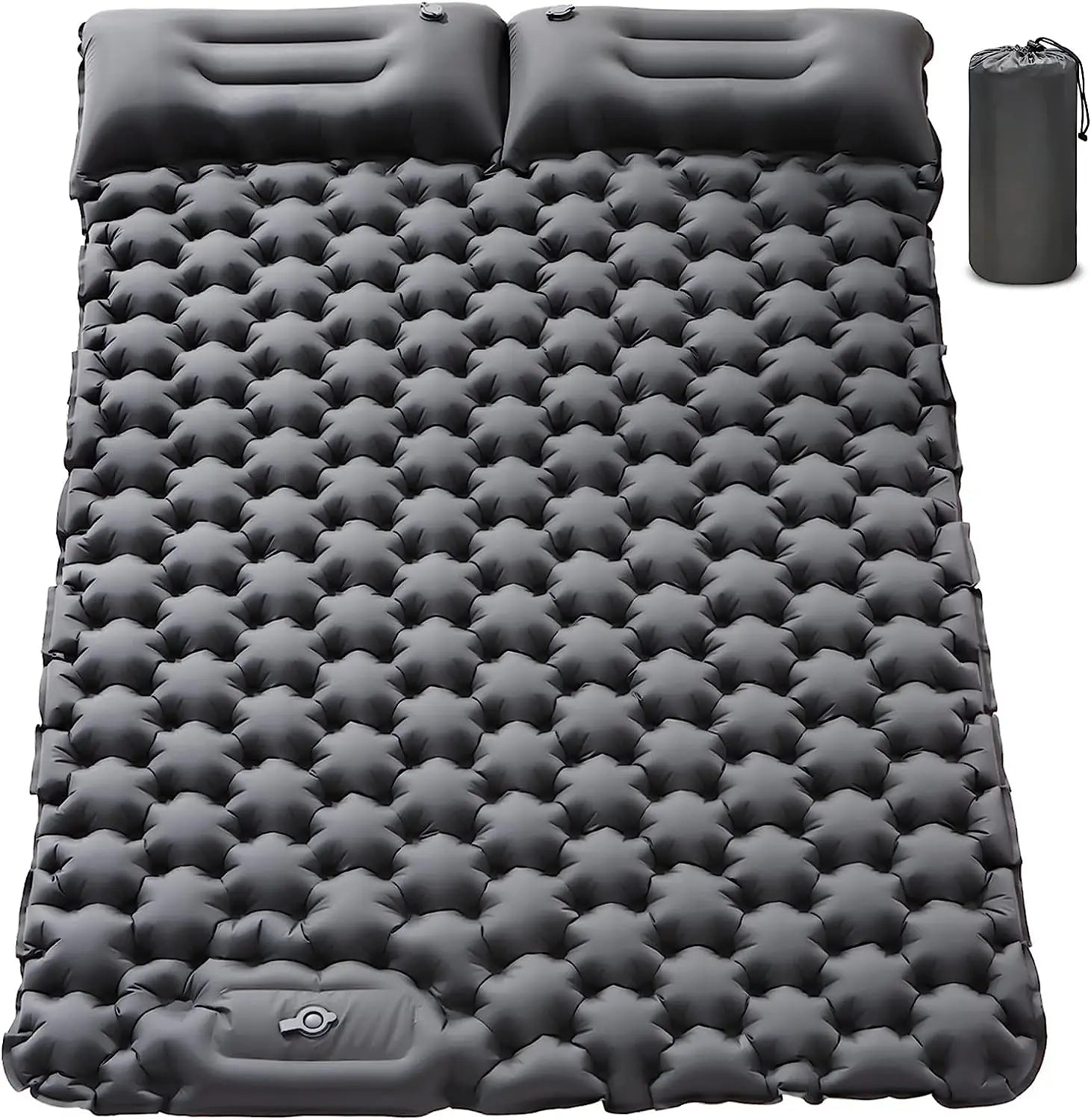 Constructed with lightweight, skin-friendly TPU nylon fabric that's water-resistant and durable, this 2 person sleeping pad is perfect for any tent, lawn, or beach. With no pump required, the 1 inflation valve and 2 deflation valves make it easy to inflate and deflate. Plus, the raised points and air pillow offer amazing comfortable support for the body and head. On top of that, our double camping mat is ultra-light and compact - weighing in at just 1.4 kg and with a foldable pack size of 30 x 13 cm , making it ideal for camping, backpacking, and hiking! Make it the perfect companion for any outdoor adventure. Providing 10 cm of comfort like a bed, our  camping mat has insulating properties to keep you warm from the cold floor, damp ground, and hard stones.