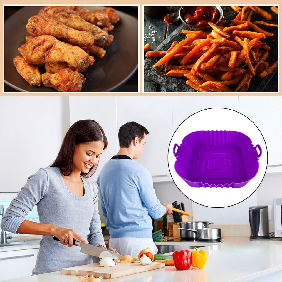 Elevate your cooking experience with this multifunctional air fryer silicone plate! Offering superior heat resistance, reliable quality, and a handle for easy cleaning, this plate is sure to make air frying a breeze. Enjoy an effortless, non-stick surface and never worry about cleaning after baking again. With high temperature resistance and oil-proof capabilities, make air frying the new go-to.