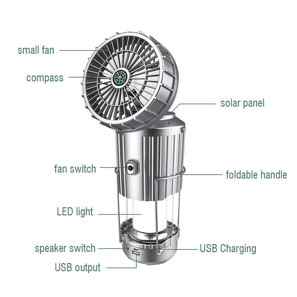 Solar Rechargeable Lantern with Fan ,Speaker and Power Bank