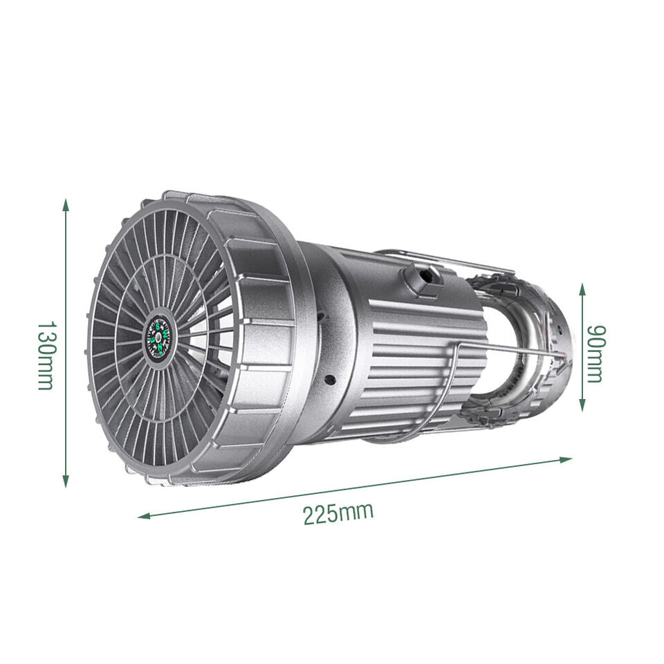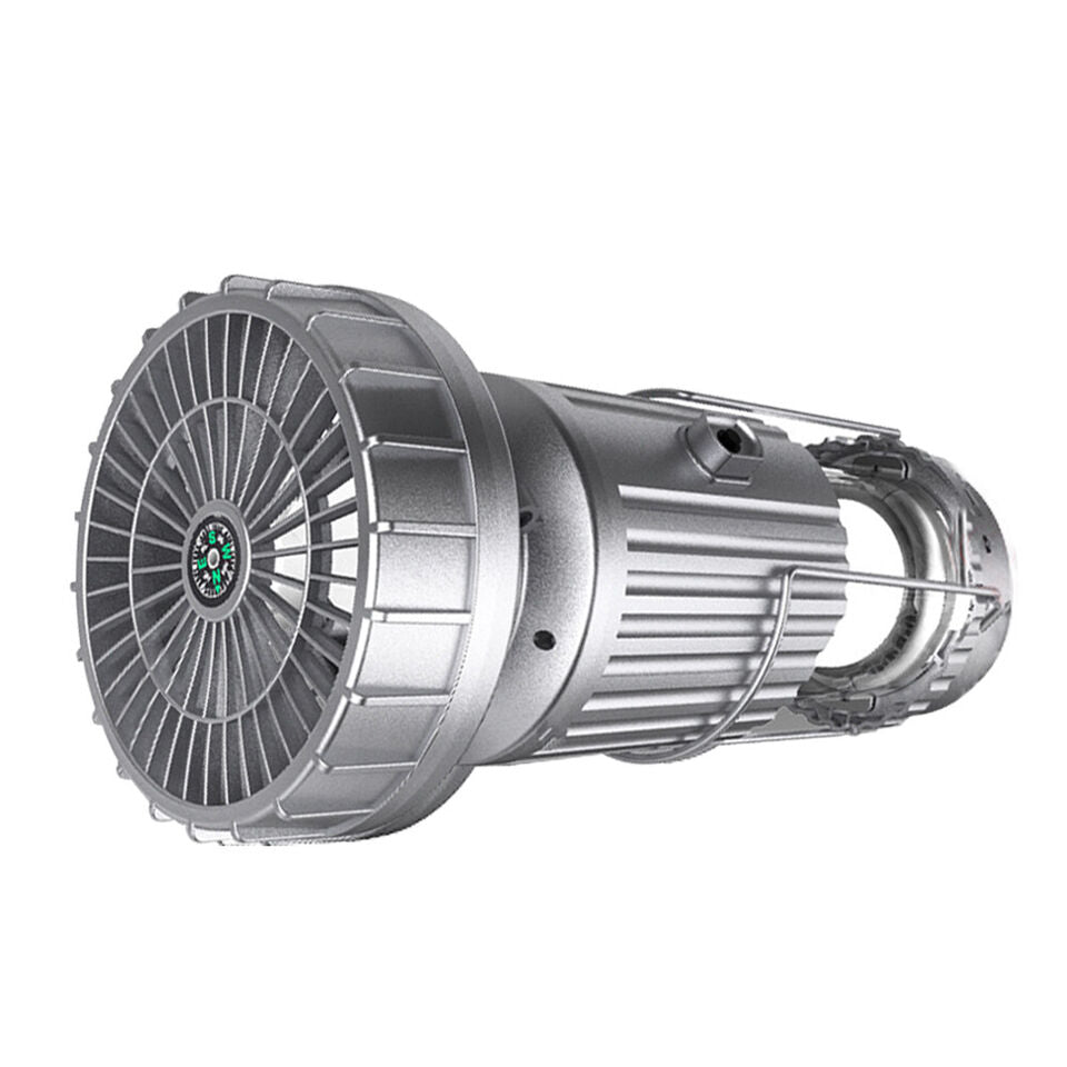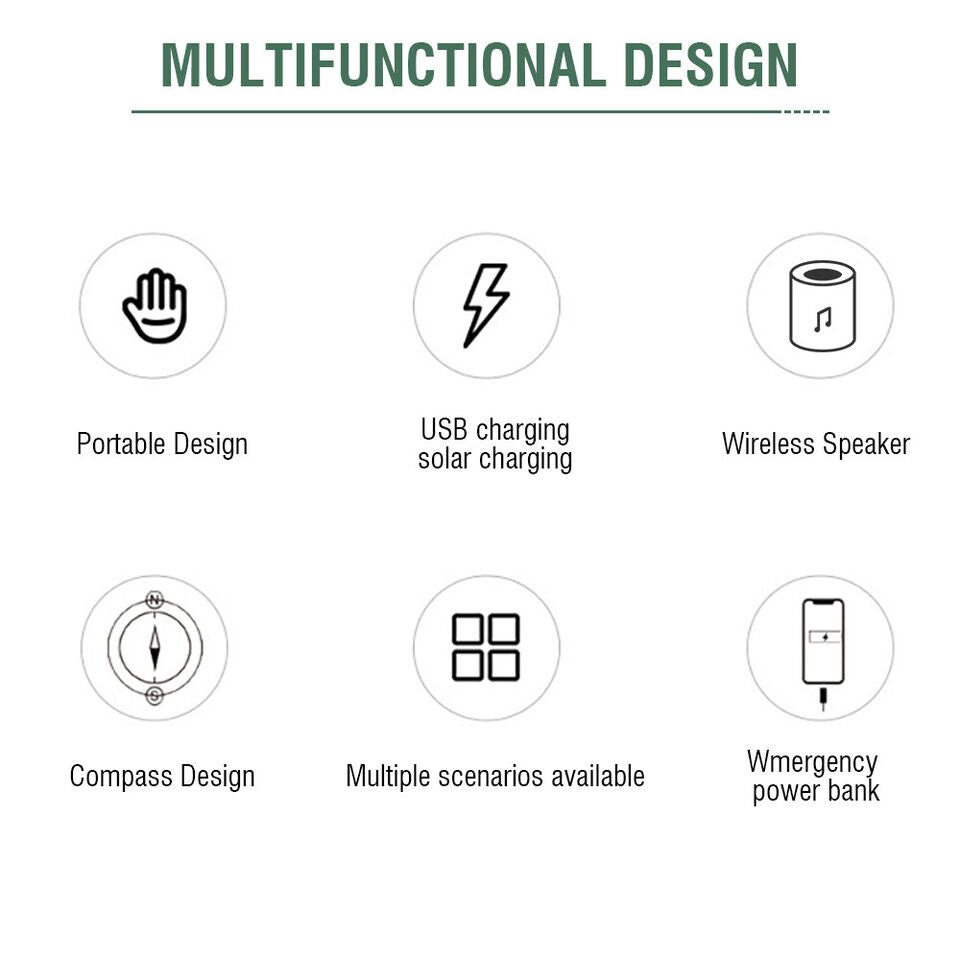 Hear the powerful wind of the three-feathered turbo fan blade with large cross-sections and spiral wind design; you can feel the strong wind concentrated in front of the net. An ideal emergency battery with data cable interface and output current for charging your communication and outdoor equipment, all in one - lantern, rechargeable battery, ambient lighting, Bluetooth speaker, and so much more! 6 LED beads emit bright light in all directions, without ever blinding you, while the multi-functional hook can be hung, handheld or placed. Plus, the Bluetooth speaker lets you enjoy music anywhere, anytime!