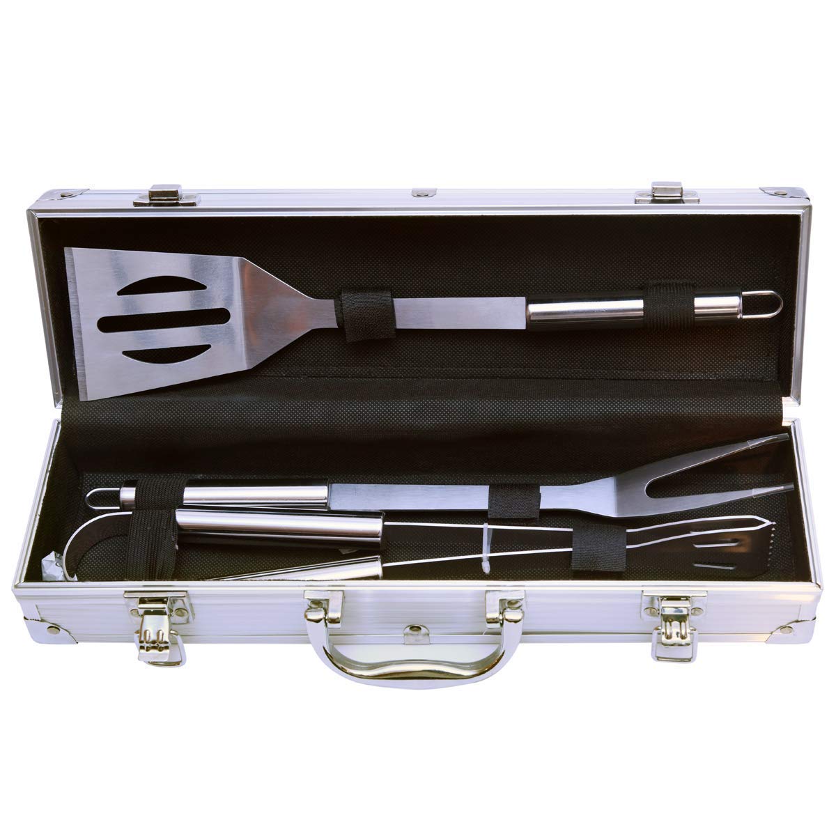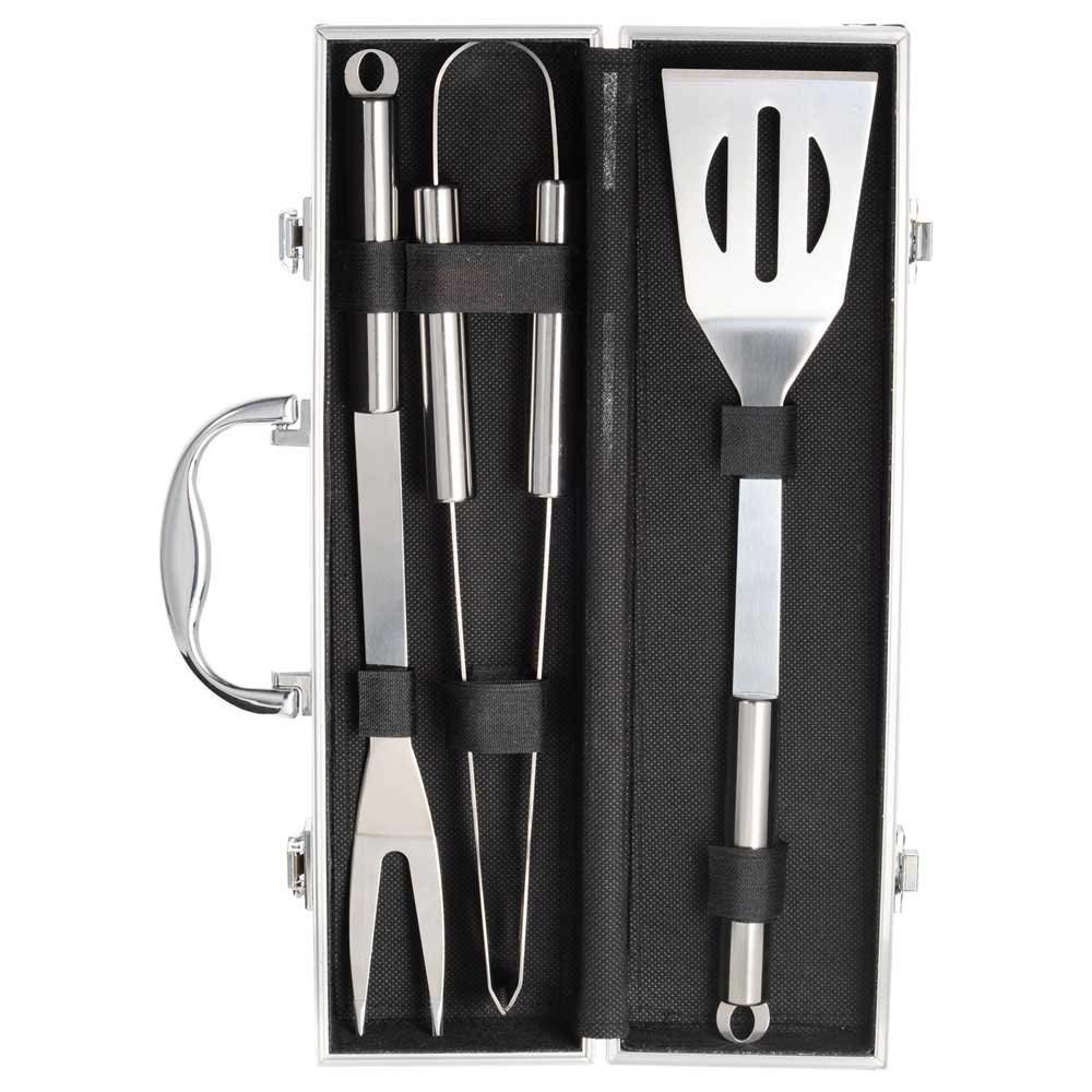Stainless Steel 3PC BBQ Tools Kit with Metal Case
