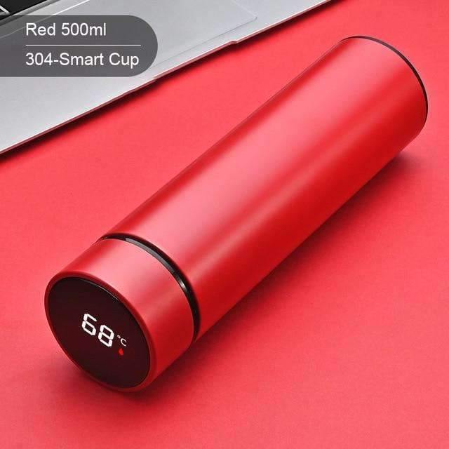 Stainless Steel Smart LED Digital Thermal Bottle - Red