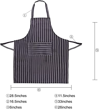 - FASHION DESIGN: length: 84cm, width: 70cm, belt length: 48cm x 2 . The spacious front pocket of the apron gives you a place to hold onto seasoning packets, meat thermometer, grill slips, pen, mobile phone and recipe cards . It is convenient for people to put some small things. Ties at the neck and waist fit most sizes. It can be adjusted according to size. PLEASE FOCUS ON THE SIZE.