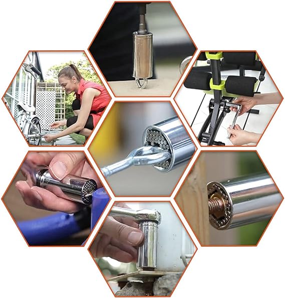 Universal socket is designed to attach to most 1/4" to 3/4" (7mm to 9mm) bolts, nuts, screws, and other oddly shaped fasteners, with over 125lbs of torque. Ideal for the handyman and handy woman, these universal wrench gadgets are great for home improvement, construction, carpentry, auto repair, plumbing, and other DIY projects.