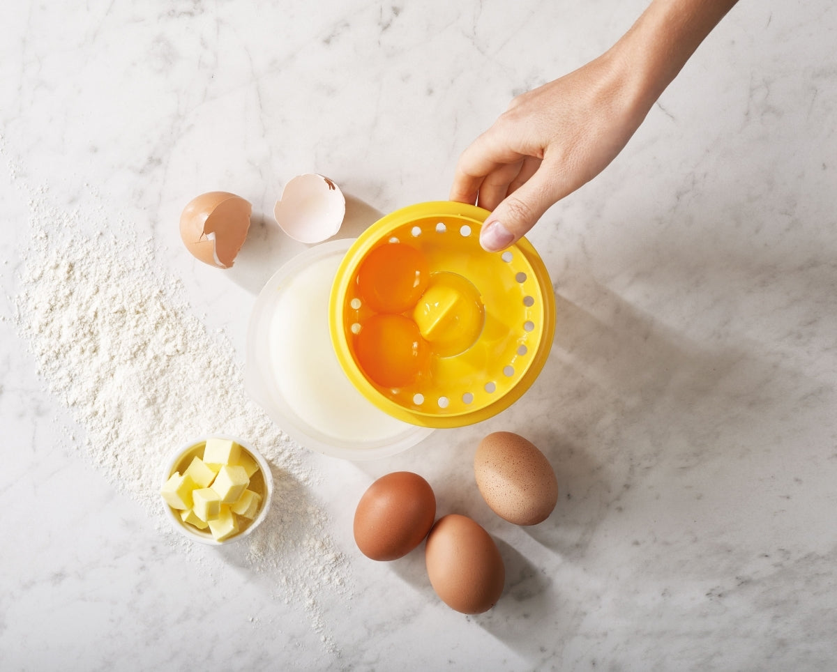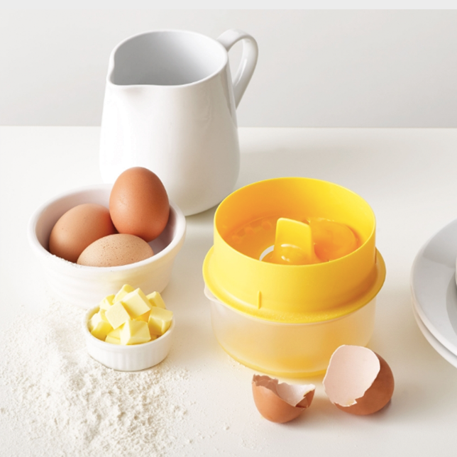 Separate multiple egg yolks at once with this clever egg yolk separator. It not only separates the yolk from the white, it also has a collecting base to make it easy and mess-free.
